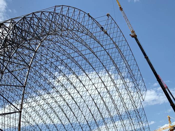 (2)网架加工前应对现场尺寸进行复测,确认无误后方可进行加工、安装;网架制作、运输、安装应遵守《空间网格结构技术规程》JGJ7-2010、《钢网架鹿泉螺栓球节点》JG/T 10-2009、《钢网架鹿泉螺栓球节点用高强度螺栓》 GB/T 16939-2016、《鹿泉钢结构鹿泉工程鹿泉施工规范》 GB50755-2012、《鹿泉钢结构鹿泉工程施工质量验收标准》 GB50205-2020。